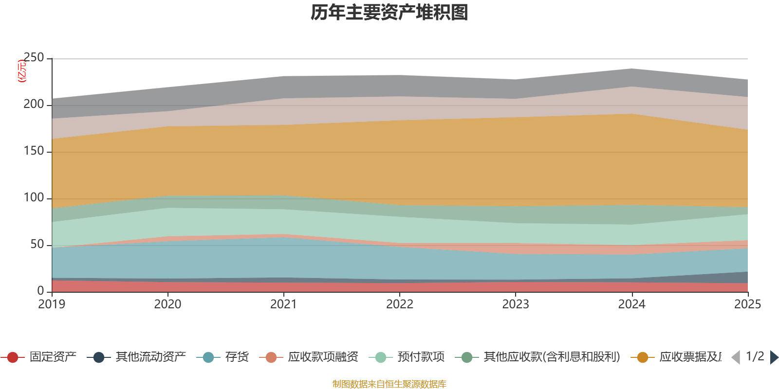 资产重大变化方面,截至2025年末,公司其他应收款(含利息和股利)较上年末减少64.13%,占公司总资产比重下降5.51个百分点;应收票据及应收账款较上年末减少15.03%,占公司总资产比重下降4.32个百分点;其他流动资产较上年末增加187.49%,占公司总资产比重上升3.66个百分点;货币资金较上年末增加20.32%,占公司总资产比重上升3.25个百分点。