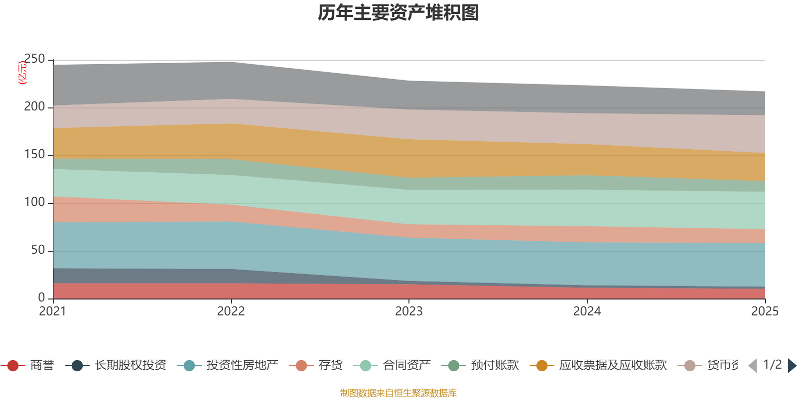 资产重大变化方面,截至2025年末,公司货币资金较上期末增加22.02%,占公司总资产比重上升3.7个百分点;预付账款较上期末减少27.22%,占公司总资产比重下降1.72个百分点;划分为持有待售的资产较上期末减少100%,占公司总资产比重下降1.45个百分点;投资性房地产较上期末增加2.32%,占公司总资产比重上升1.07个百分点。