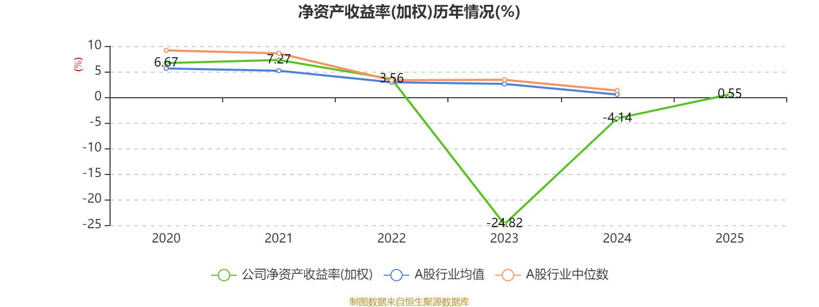 数据显示,2025年公司平均净资产收益率为0.55%,较上年同期上升4.69个百分点。