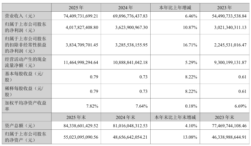 3月30日,蓝思科技(300433)公布2025年年报,公司营业收入为744.1亿元,同比上升6.5%;归母净利润为40.2亿元,同比上升10.9%;扣非归母净利润为38.3亿元,同比上升16.7%;经营现金流净额为114.65亿元,同比增长5.3%;EPS(全面摊薄)为0.7603元。