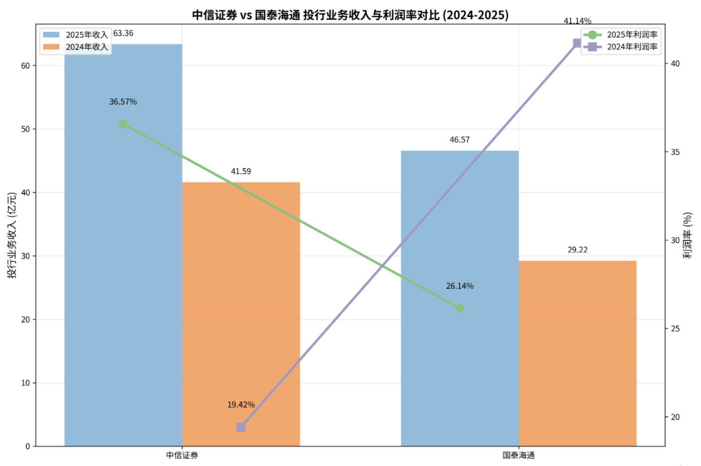 这意味着,中信证券投行业务利润率反超国泰海通,并且高出10.43个百分点。