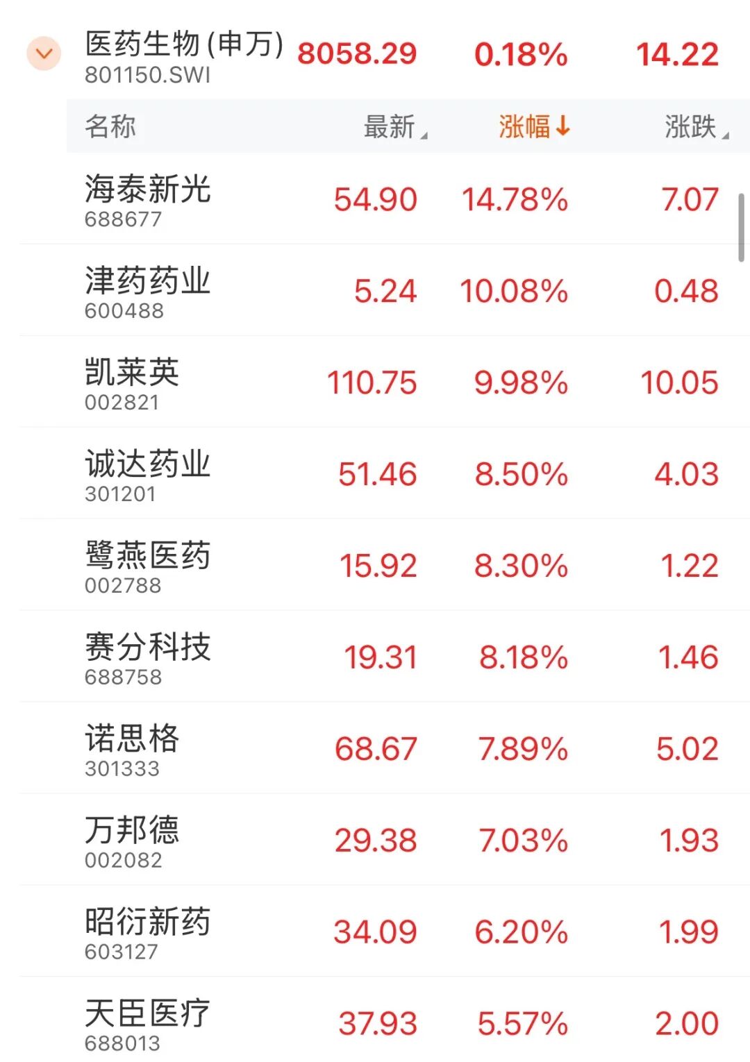 早盘,医药板块再度活跃。创新药方向持续走强。截至午间收盘,津药药业收获3连板,凯莱英涨停。