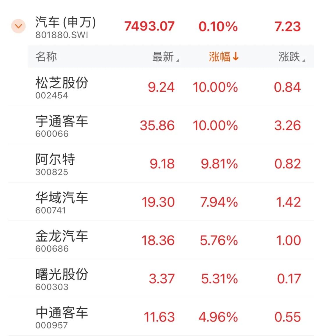 早盘,汽车整车板块走高。宇通客车开盘“一字”涨停,曙光股份盘中一度触及涨停。