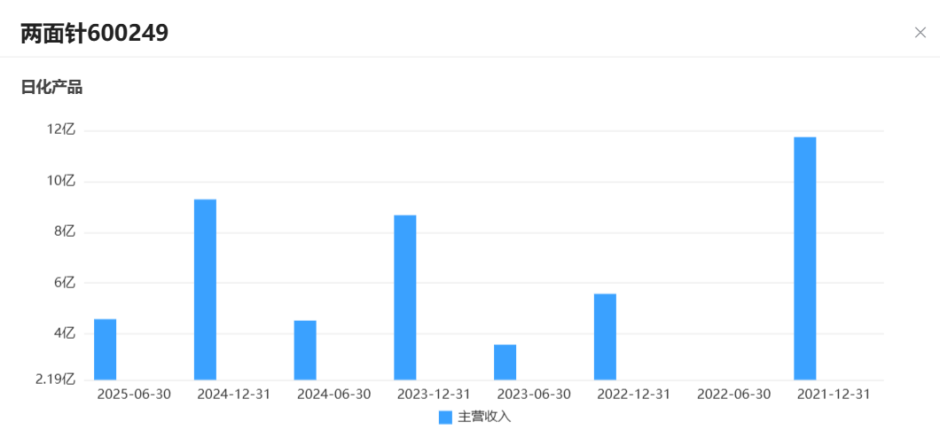 相对应地,与金融资产带来的业绩大幅起落形成鲜明对比的,是两面针主营业务的长期疲软。尽管日化产品贡献了公司近九成的营业收入,但其盈利能力持续偏低。从近五年走势看,该业务营收也呈现明显波动,2021年至2024年间分别为11.73亿元、5.57亿元、8.66亿元和9.28亿元,增长缺乏稳定性。