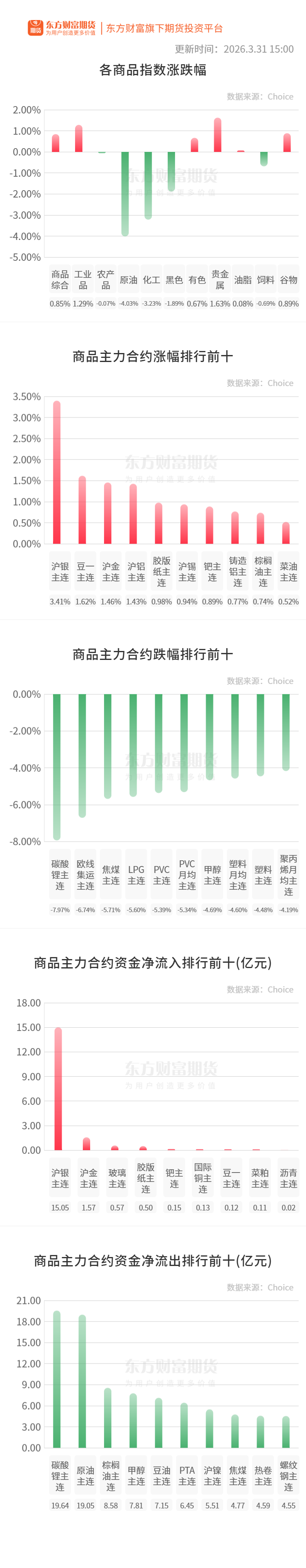 生猪:截至3月31日14:00时,全国农产品批发市场猪肉平均价格为15.31元/公斤,比昨天下降1.0%。(农业农村部)