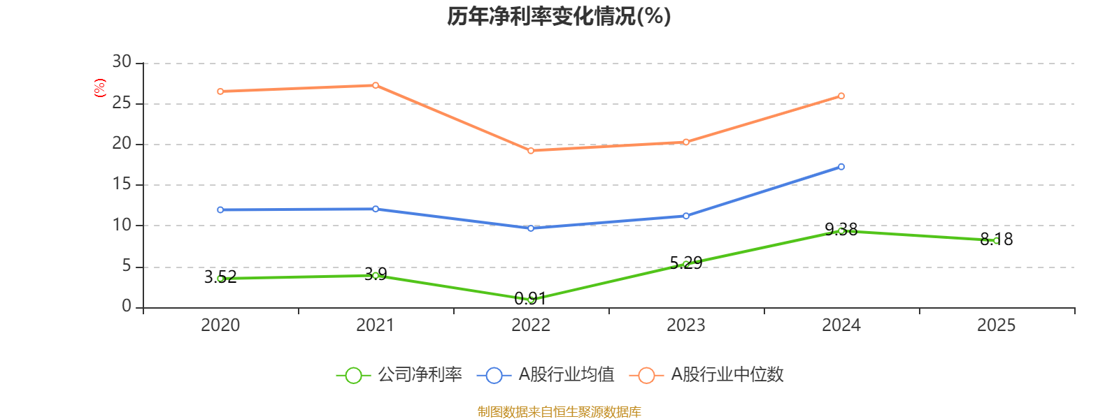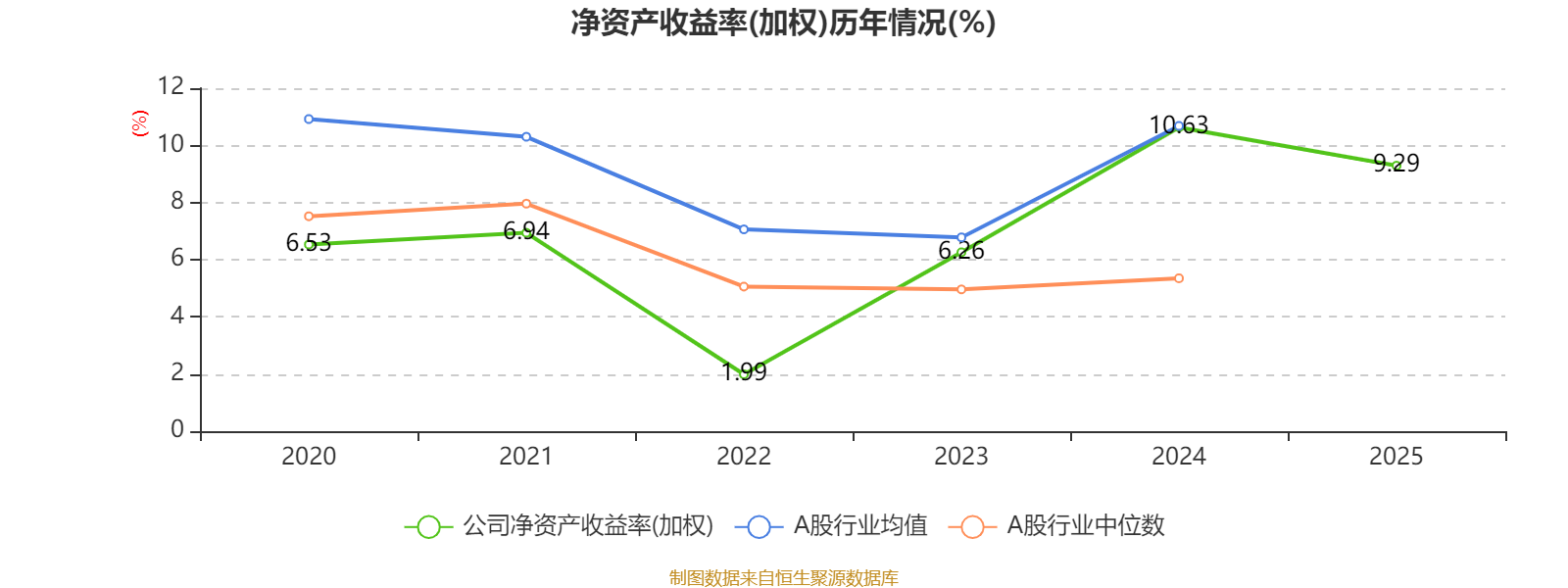 数据显示,2025年公司平均净资产收益率为9.29%,较上年同期下降1.34个百分点。