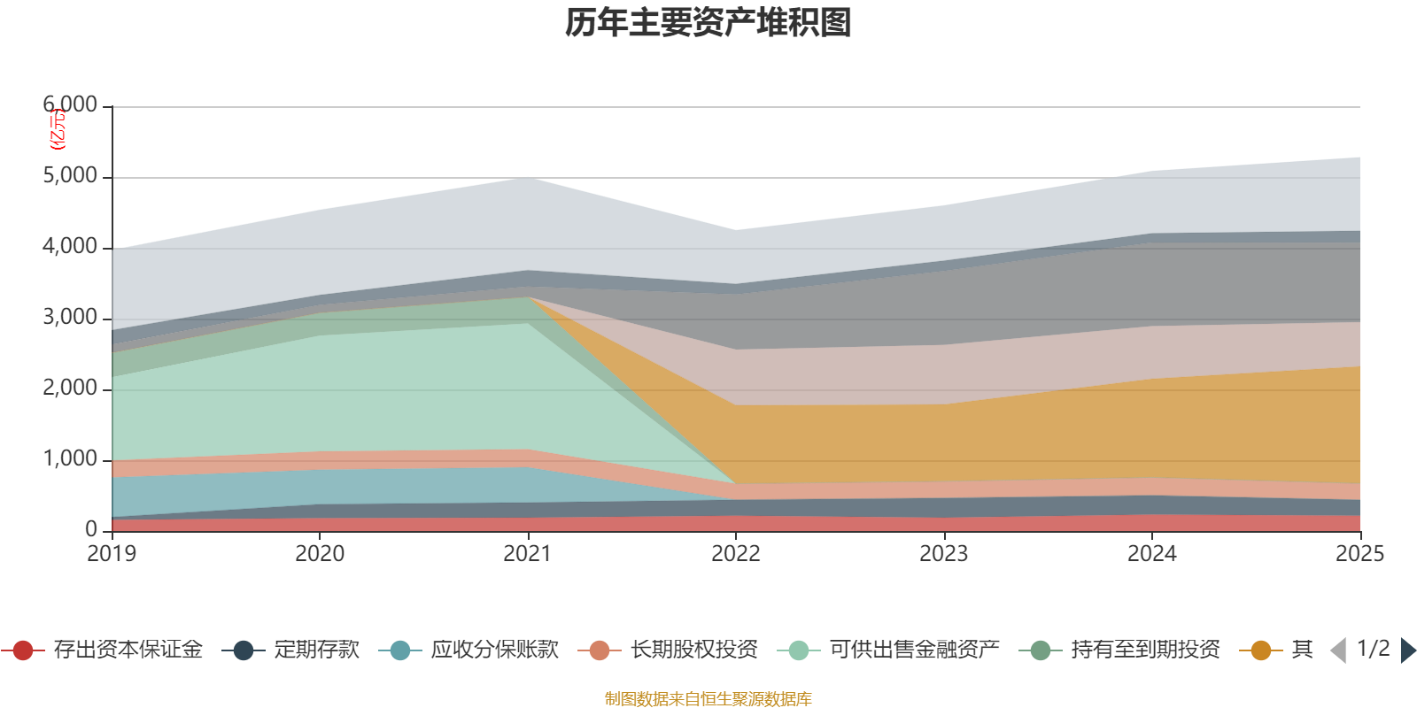 资产重大变化方面,截至2025年末,公司其他债权投资较上期末增加18.82%,占公司总资产比重上升3.96个百分点;债权投资较上期末减少16.19%,占公司总资产比重下降2.82个百分点;交易性金融资产较上期末减少4.87%,占公司总资产比重下降1.94个百分点;其他权益工具投资较上期末增加61.25%,占公司总资产比重上升1.28个百分点。