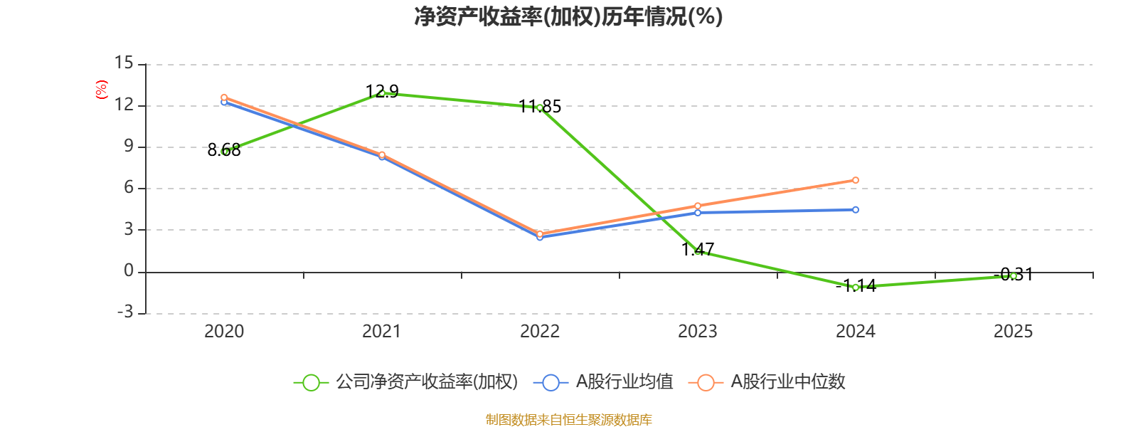 数据显示,2025年公司平均净资产收益率为-0.31%,较上年同期上升0.83个百分点。