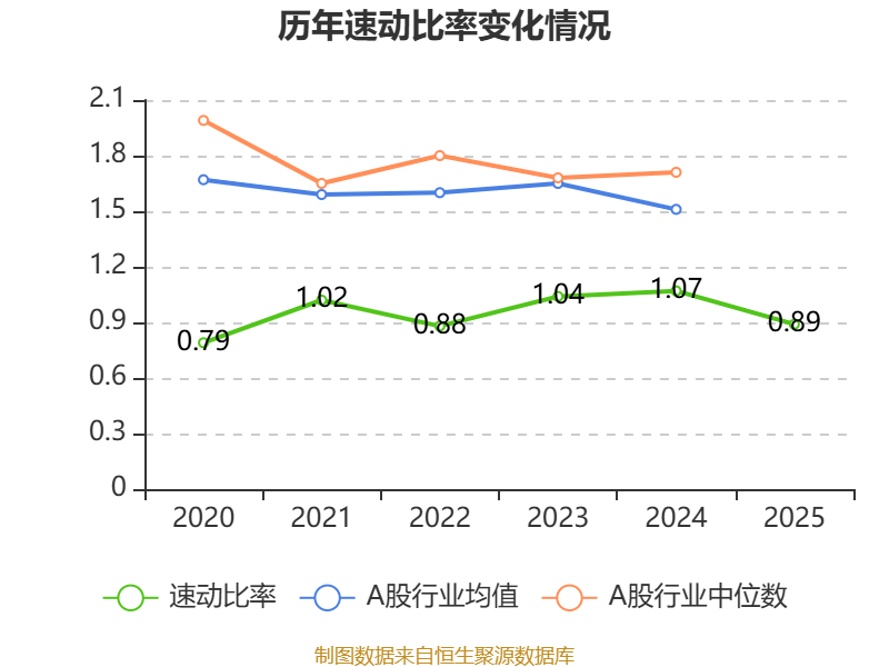 2025年,公司流动比率为1.13,速动比率为0.89。