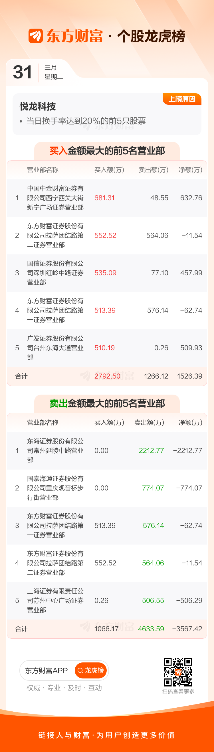 交易所2026年3月31日公布的交易公开信息显示,悦龙科技因成为当日换手率达到20%的前5只股票上榜。悦龙科技当日收报25.29元,涨跌幅-16.26%,偏离值58.04%,换手率58.04%,成交额3.00亿。