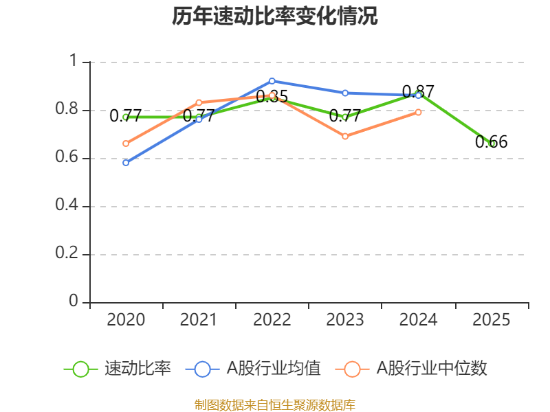 2025年,公司流动比率为0.69,速动比率为0.66。