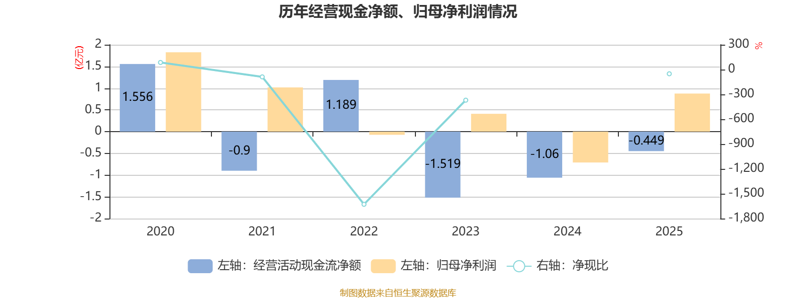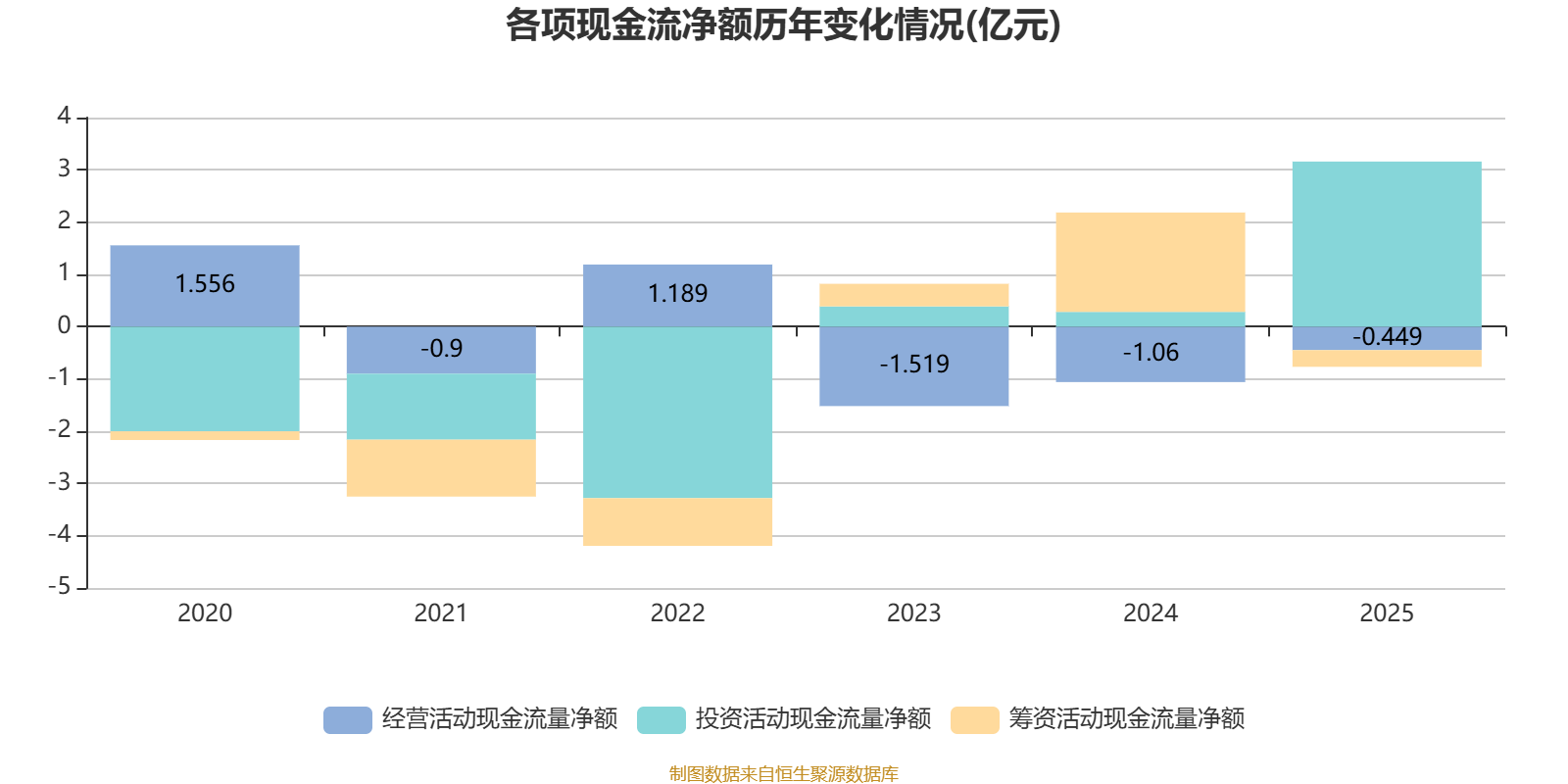 2025年,公司经营活动现金流净额为-4489.8万元,同比增加6110.1万元;筹资活动现金流净额-3193.4万元,同比减少2.22亿元;投资活动现金流净额3.16亿元,上年同期为2827.2万元。