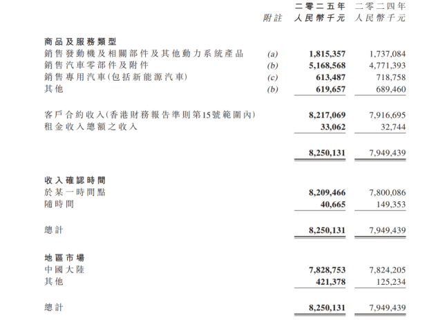 其中,发动机及相关部件及其他动力系统产品实现收入18.15亿元,同比增长4.51%;销售汽车零部件及附件全年收入51.69亿元,同比提升8.32%;销售专用汽车(包括新能源汽车)收入为6.13亿元,同比下滑14.64%。