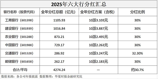 随着国有六大行2025年年报全部出炉,年度“分红账单”正式落定。