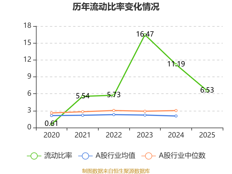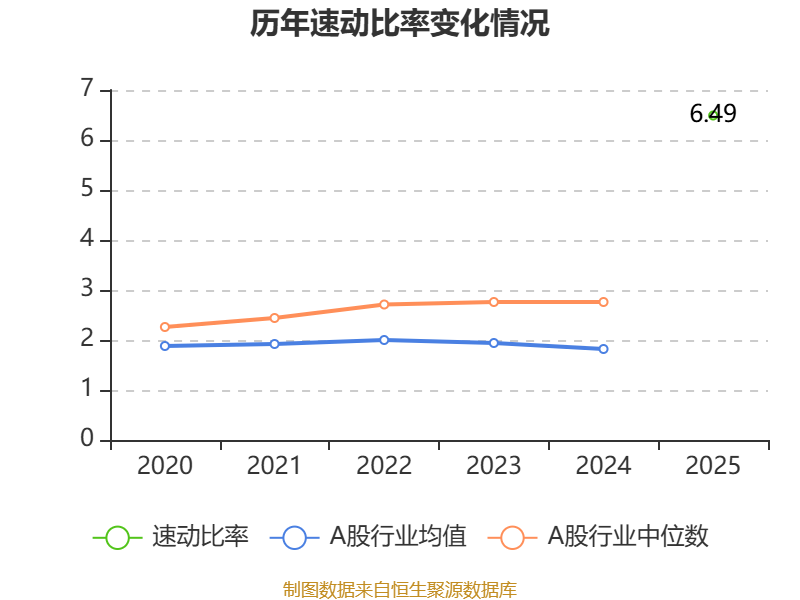 2025年,公司流动比率为6.53,速动比率为6.49。