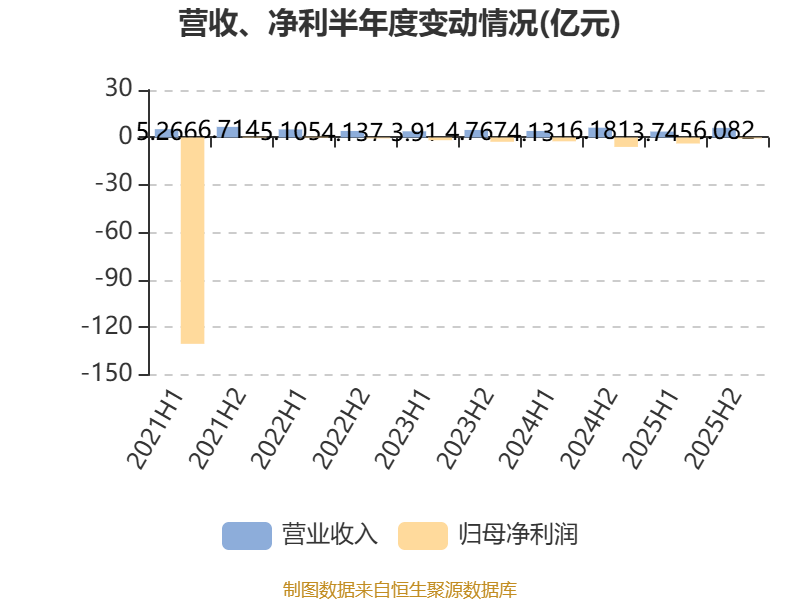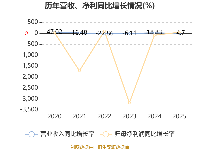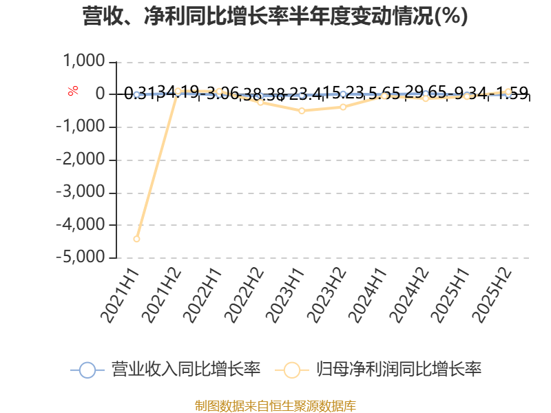 数据显示,2025年公司平均净资产收益率为-6.01%,较上年同期上升3.73个百分点。