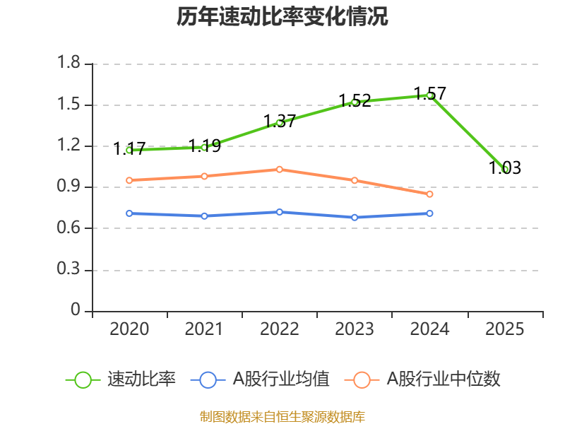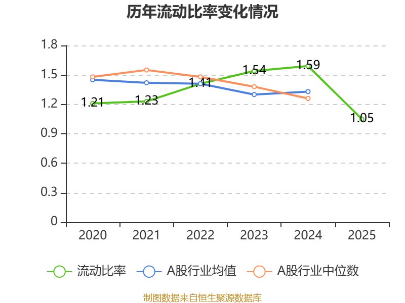 2025年,公司流动比率为1.05,速动比率为1.03。