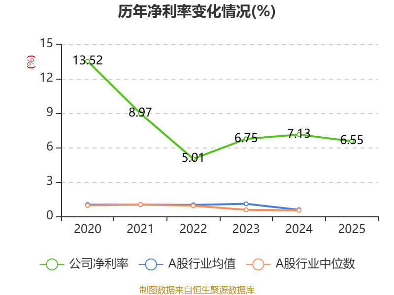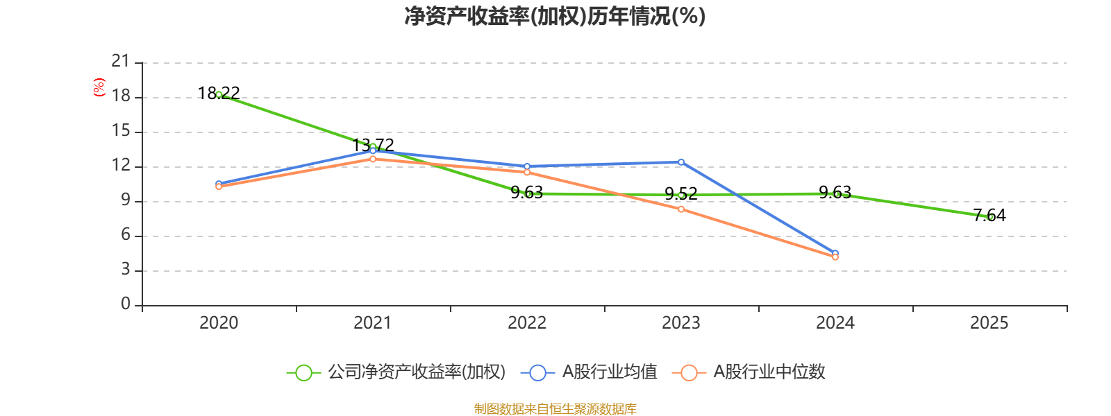 数据显示,2025年公司平均净资产收益率为7.64%,较上年同期下降1.99个百分点。