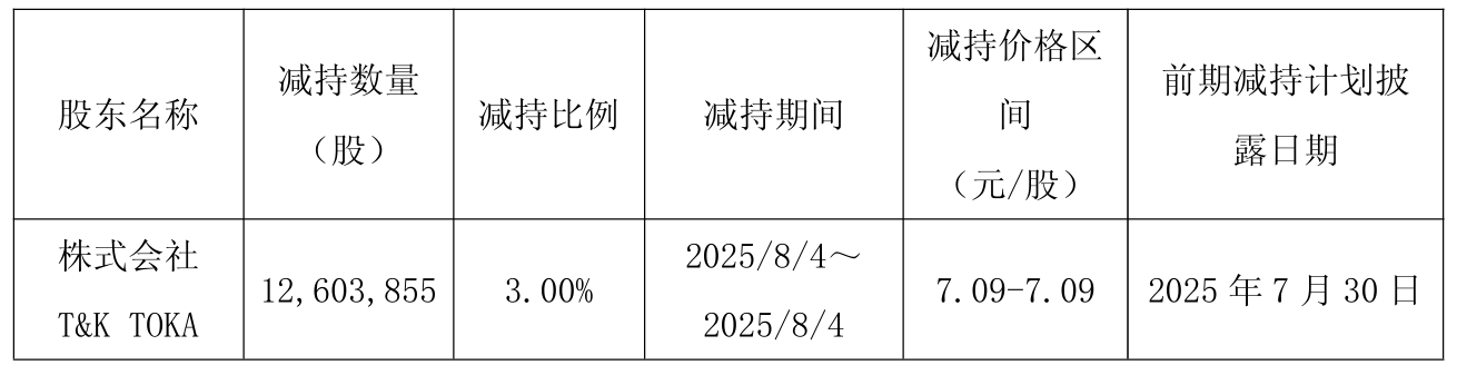 截至本公告披露日,TOKA持有公司股份1.12亿股,占公司总股本的26.36%,为公司第二大股东。该股东无一致行动人,上述股份来源为公司首次公开发行前取得的股份以及公司实施资本公积金转增股本取得的股份。