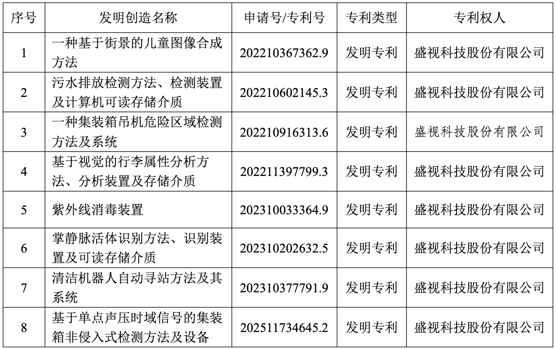原标题:盛视科技:获8项发明专利权