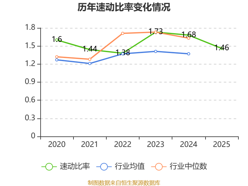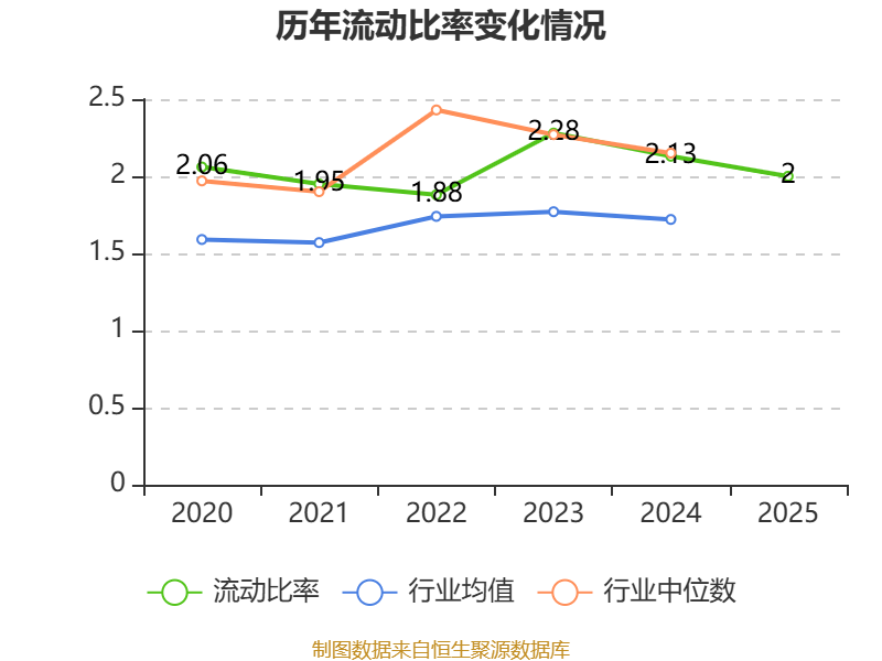 2025年,公司流动比率为2,速动比率为1.46。