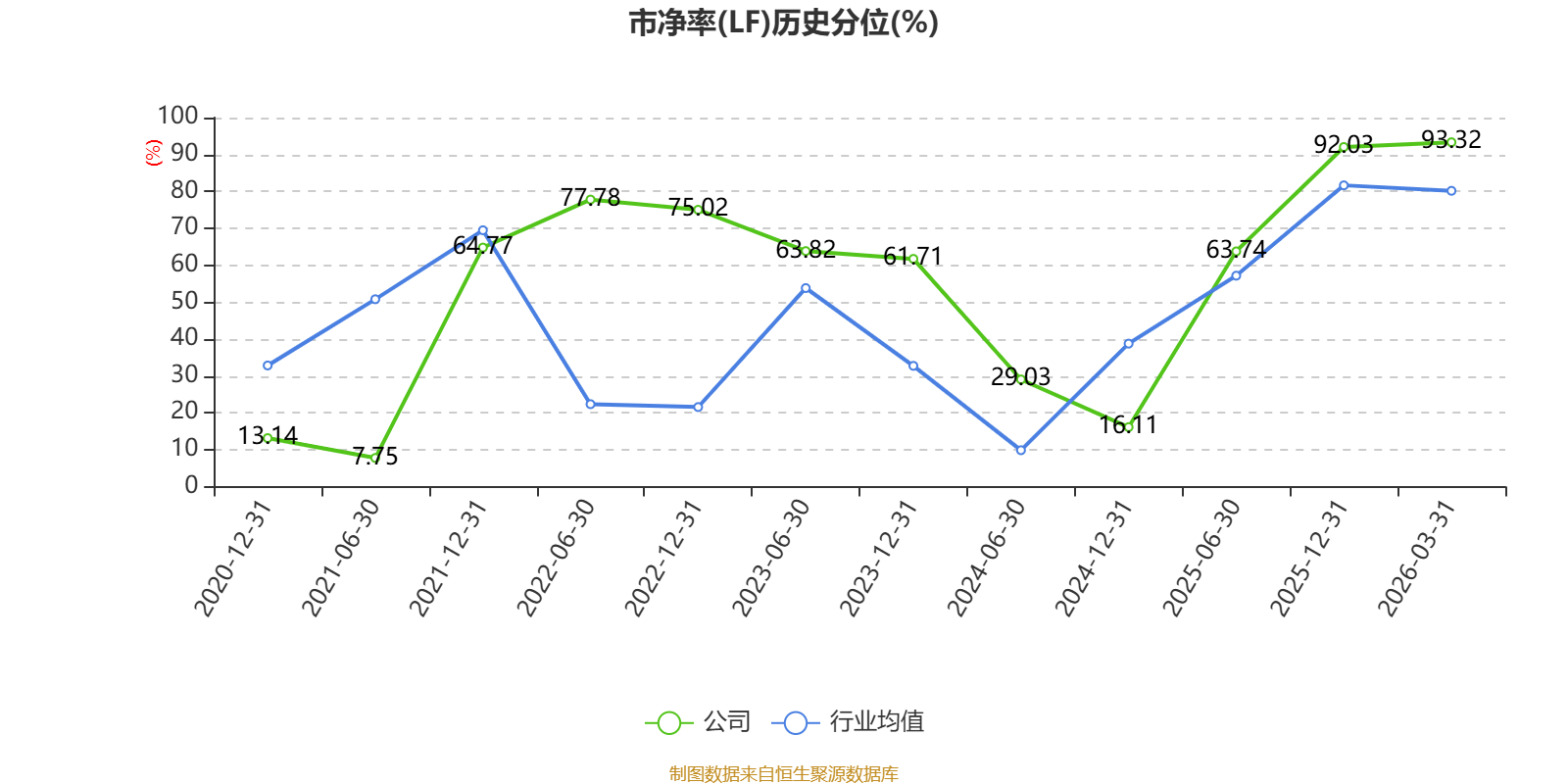 市盈率、市净率为负时,不显示当期分位数,会导致折线图中断。