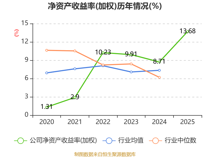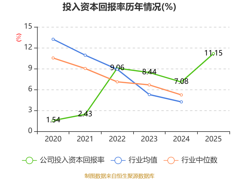 数据显示,2025年公司加权平均净资产收益率为13.68%,较上年同期上升4.97个百分点。公司2025年投入资本回报率为11.15%,较上年同期上升4.07个百分点。