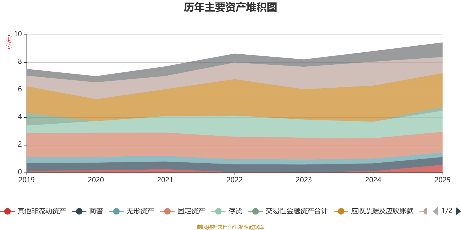 资产重大变化方面,截至2025年末,公司货币资金较上年末减少32.28%,占公司总资产比重下降7.24个百分点;其他非流动资产较上年末增加449.37%,占公司总资产比重上升4.76个百分点;应收票据及应收账款较上年末减少7.14%,占公司总资产比重下降3.95个百分点;交易性金融资产合计占公司总资产的3.27%,上年末为0。
