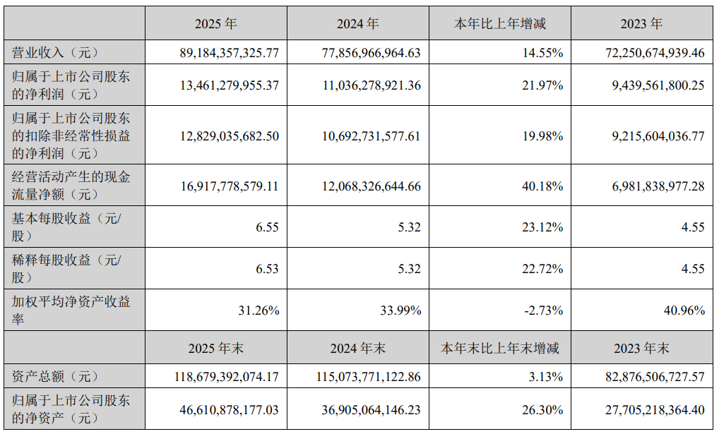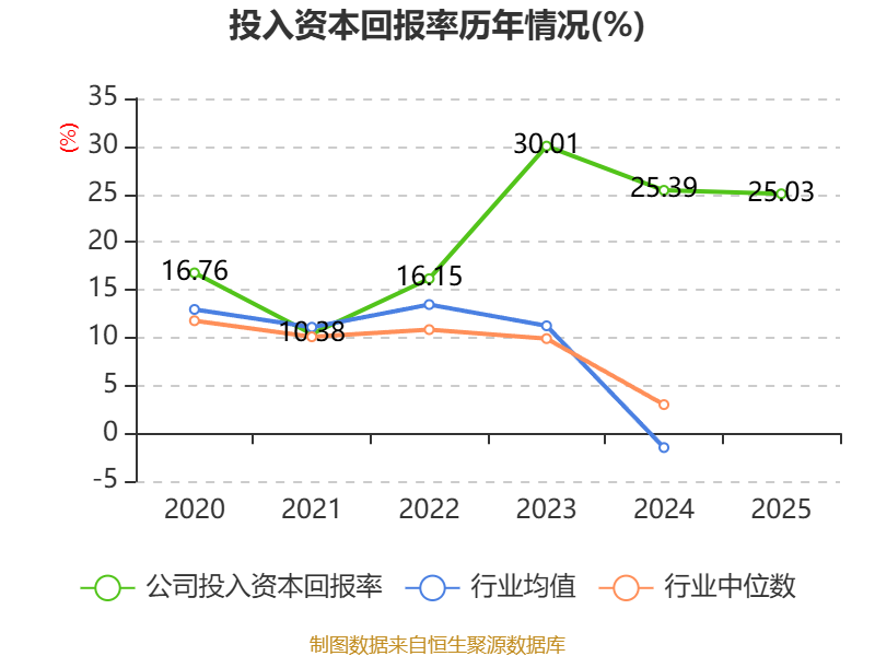 数据显示,2025年公司加权平均净资产收益率为31.26%,较上年同期下降2.73个百分点。公司2025年投入资本回报率为25.03%,较上年同期下降0.36个百分点。