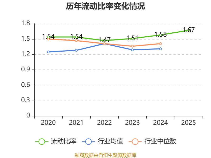 2025年,公司流动比率为1.67,速动比率为1.19。