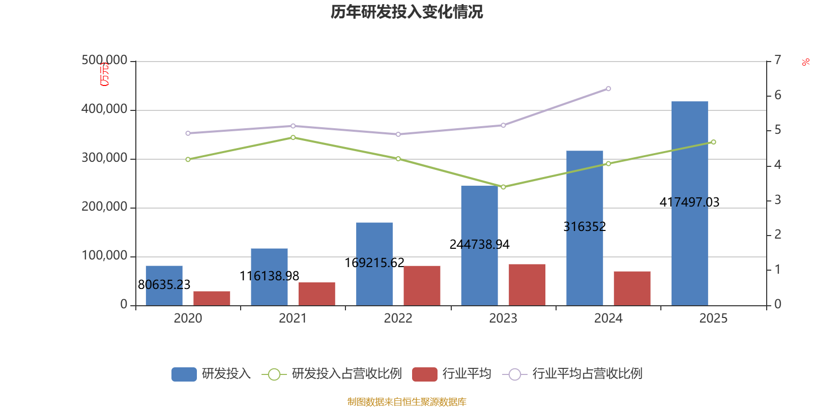 2025年全年,公司研发投入金额为41.75亿元,同比增长31.97%;研发投入占营业收入比例为4.68%,相比上年同期上升0.62个百分点。此外,公司全年研发投入资本化率为0%。