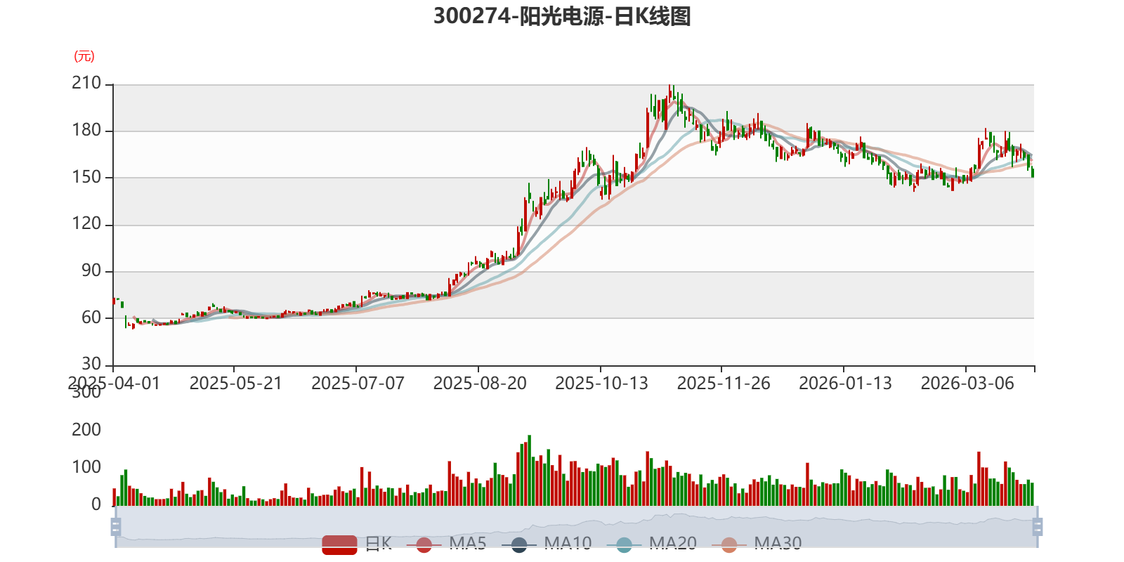 以3月31日收盘价计算,阳光电源目前市盈率(TTM)约为23.22倍,市净率(LF)约6.71倍,市销率(TTM)约3.5倍。