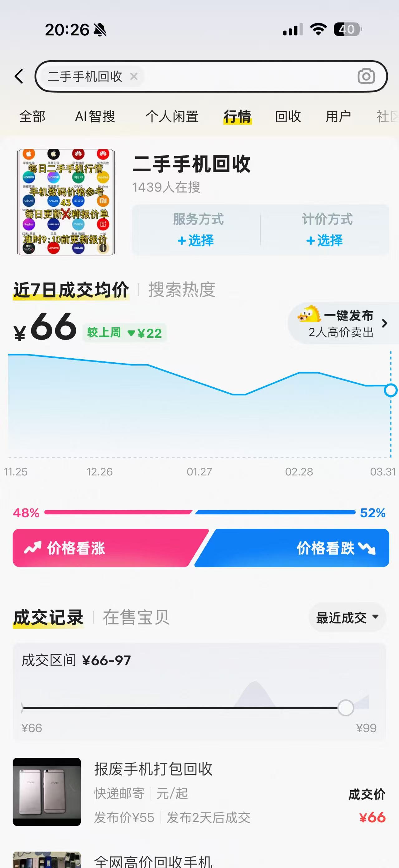 过去被丢在抽屉里的报废机,如今被回收商抢着收;而一些成色不错的手机,价格甚至悄悄上涨。社交平台上,“三台旧机换一台新机”的说法也开始流传。