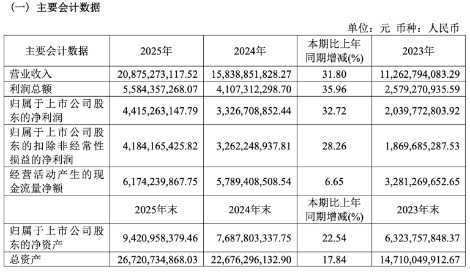 3月30日,东鹏饮料(605499.SH;09980.HK)发布2025年财报。财报显示,公司全年实现营业收入208.75亿元,同比增长31.80%;归母净利润44.15亿元,同比增幅32.72%。