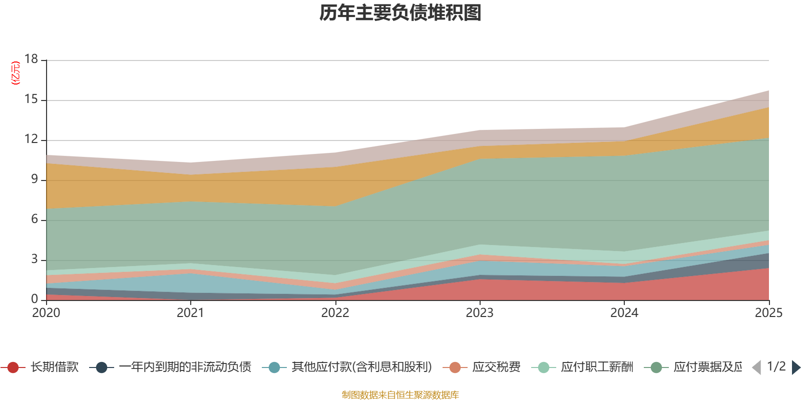 负债重大变化方面,截至2025年末,公司应付票据及应付账款较上年末减少3.07%,占公司总资产比重下降4.39个百分点;短期借款较上年末增加112.01%,占公司总资产比重上升2.23个百分点;长期借款较上年末增加87.74%,占公司总资产比重上升1.89个百分点;一年内到期的非流动负债较上年末增加138.4%,占公司总资产比重上升1.26个百分点。