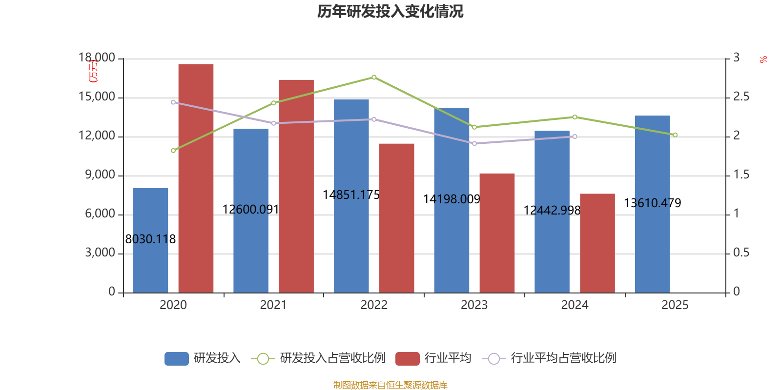2025年全年,公司研发投入金额为1.36亿元,同比增长9.38%;研发投入占营业收入比例为2.02%,相比上年同期下降0.23个百分点。此外,公司全年研发投入资本化率为0%。