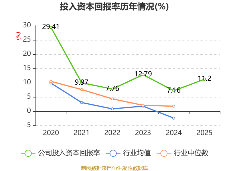 数据显示,2025年公司加权平均净资产收益率为11.14%,较上年同期上升2.92个百分点。公司2025年投入资本回报率为11.2%,较上年同期上升4.04个百分点。