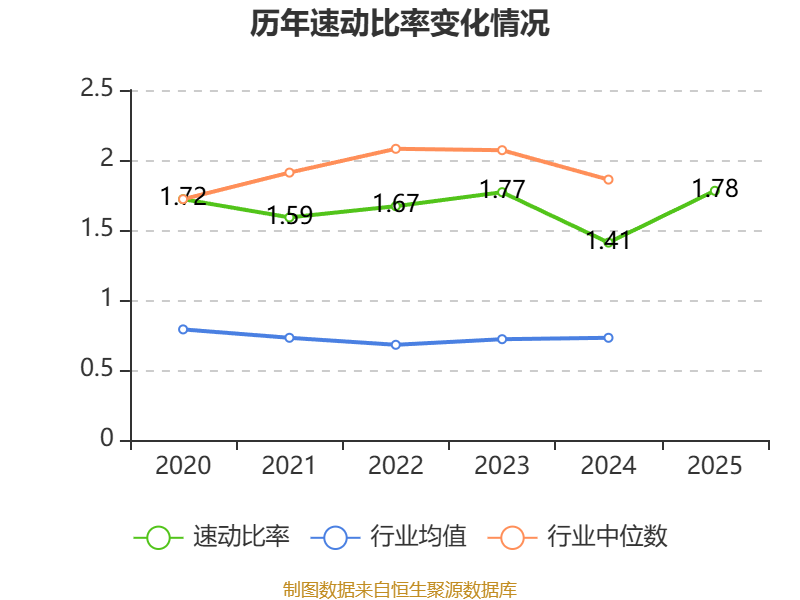 2025年,公司流动比率为2.2,速动比率为1.78。