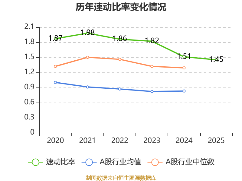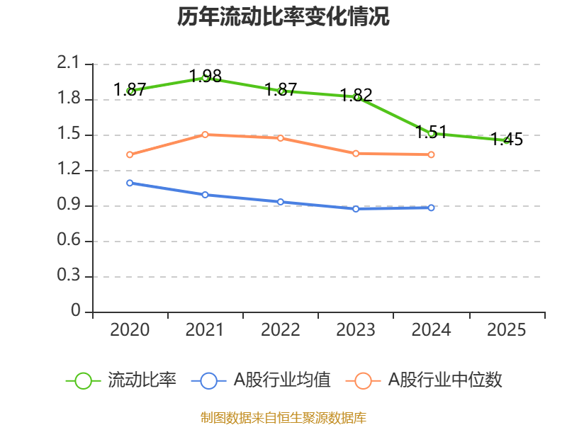 2025年,公司流动比率为1.45,速动比率为1.45。