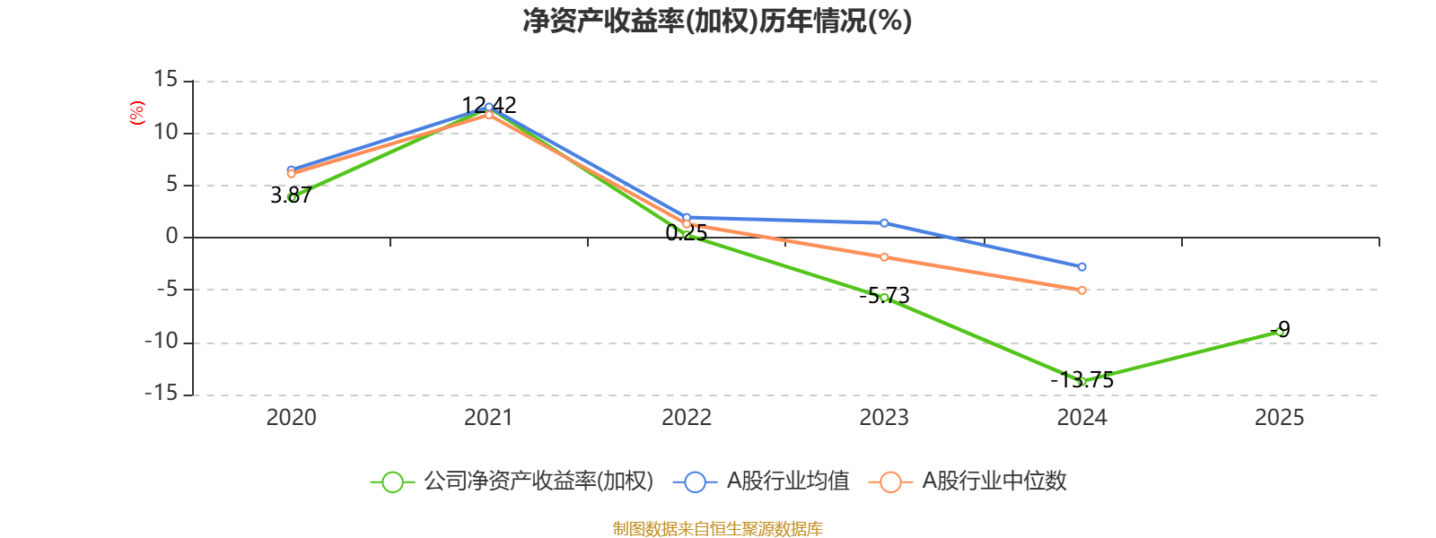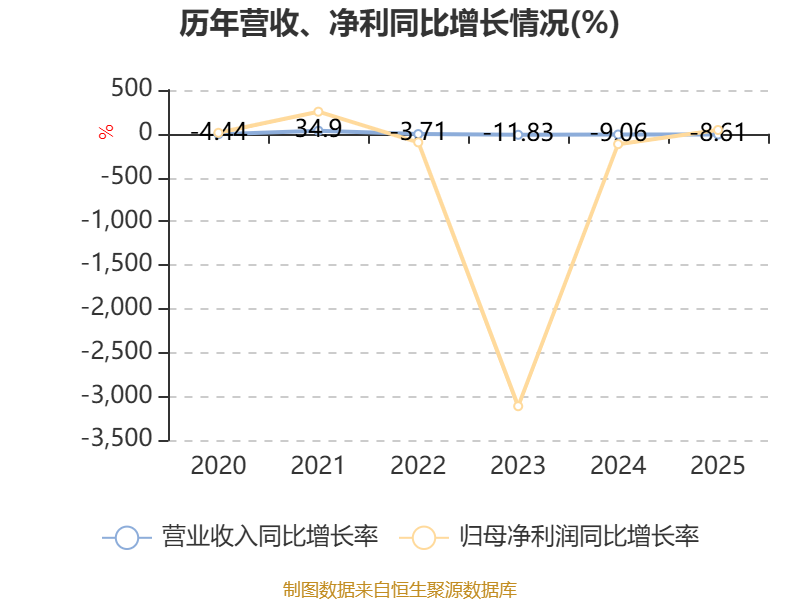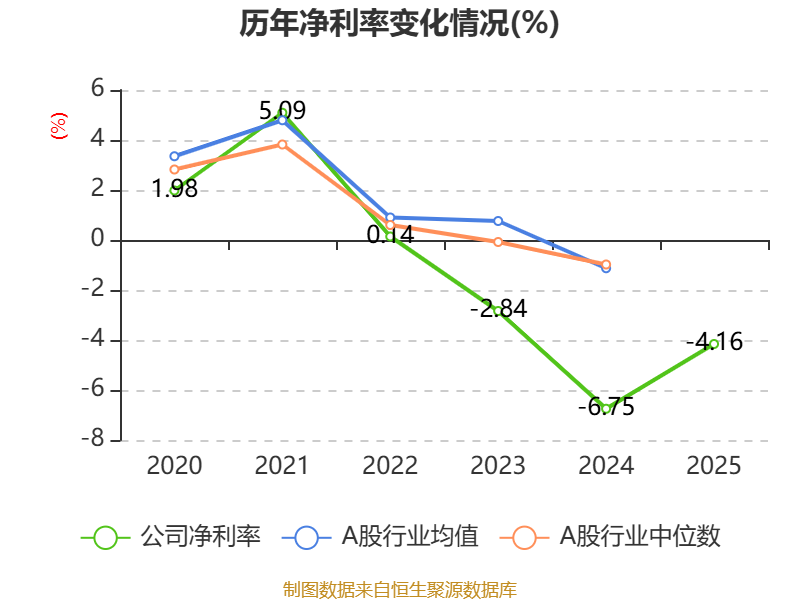 数据显示,2025年公司平均净资产收益率为-9%,较上年同期上升4.75个百分点。