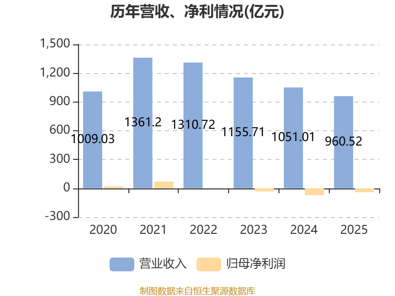 中证智能财讯鞍钢股份(00347)3月30日披露2025年度报告。报告期内,公司实现营业收入960.52亿元,同比下降8.61%;归母净利润亏损40.68亿元,上年同期亏损71.22亿元;据报告显示,鞍钢股份基本每股收益为-0.43元,平均净资产收益率为-9%。