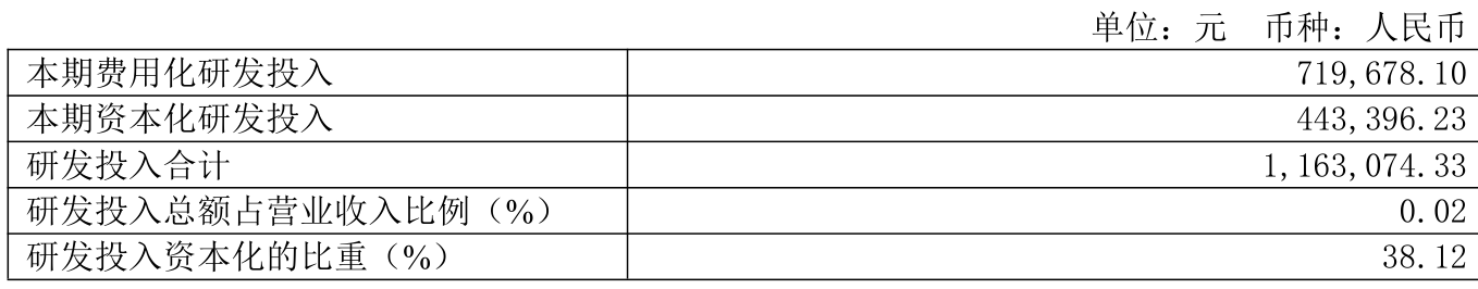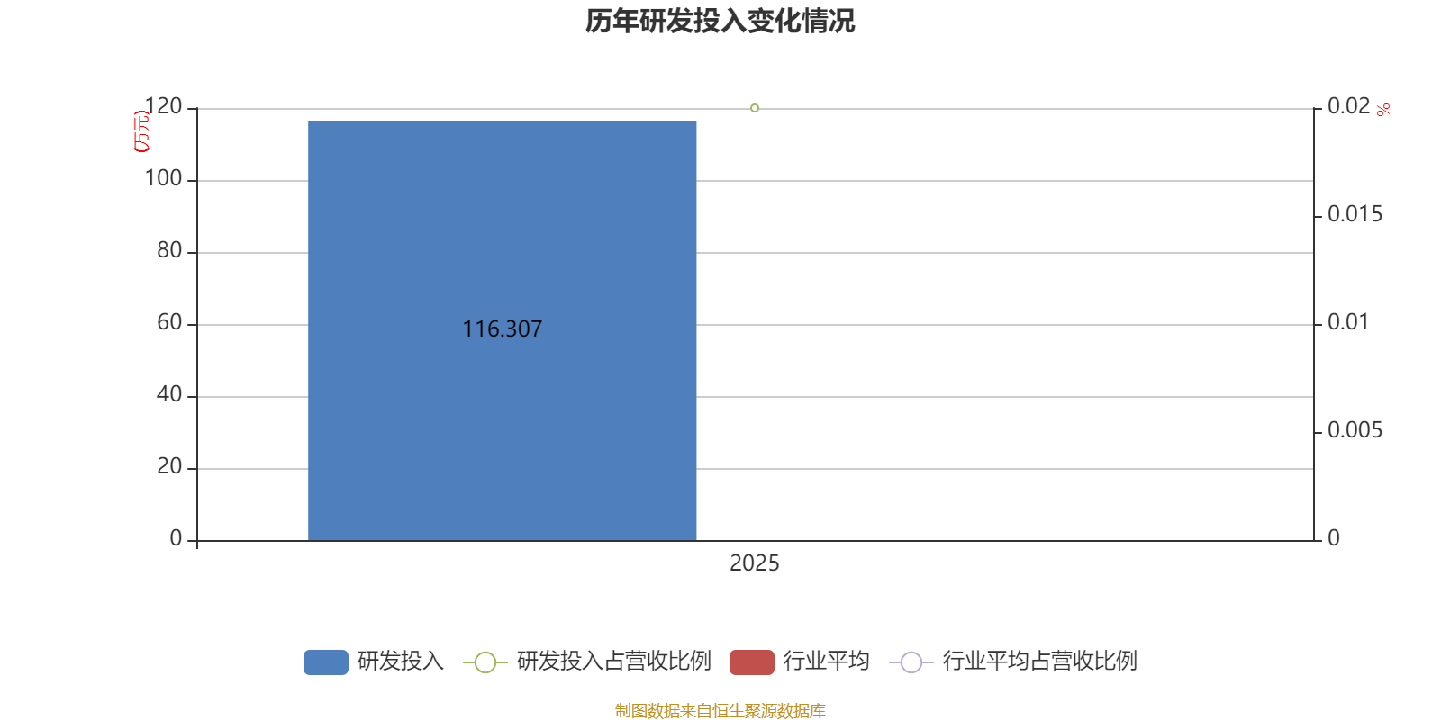 2025年全年,公司研发投入金额为116.31万元;研发投入占营业收入比例为0.02%。此外,公司全年研发投入资本化率为38.12%。
