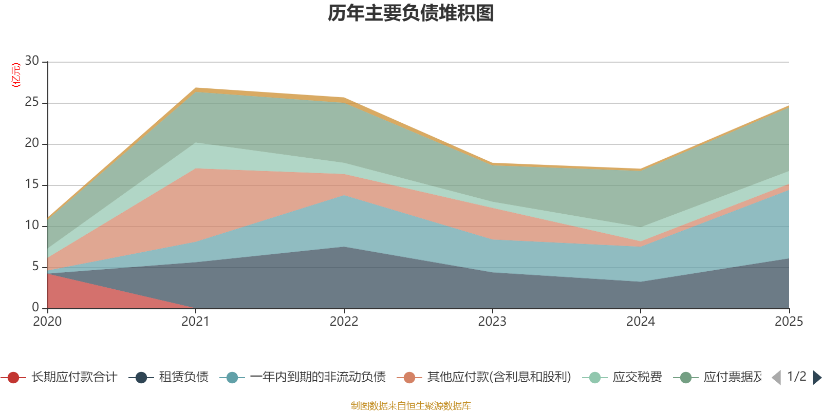负债重大变化方面,截至2025年末,公司一年内到期的非流动负债较上年末增加95.79%,占公司总资产比重上升2.88个百分点;租赁负债较上年末增加88.13%,占公司总资产比重上升1.97个百分点;应交税费较上年末减少9.56%,占公司总资产比重下降0.36个百分点;应付票据及应付账款较上年末增加13.15%,占公司总资产比重下降0.11个百分点。