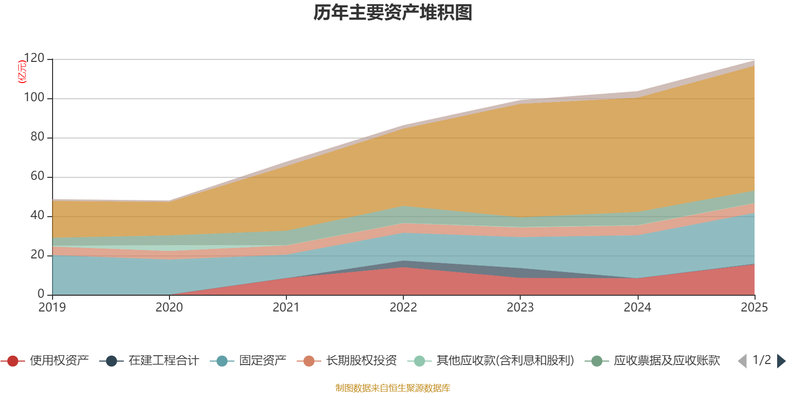 资产重大变化方面,截至2025年末,公司使用权资产较上年末增加84.39%,占公司总资产比重上升4.86个百分点;货币资金较上年末增加9.29%,占公司总资产比重下降2.85个百分点;应收票据及应收账款较上年末减少5.75%,占公司总资产比重下降1.17个百分点;其他非流动资产较上年末减少57.13%,占公司总资产比重下降0.89个百分点。