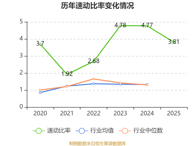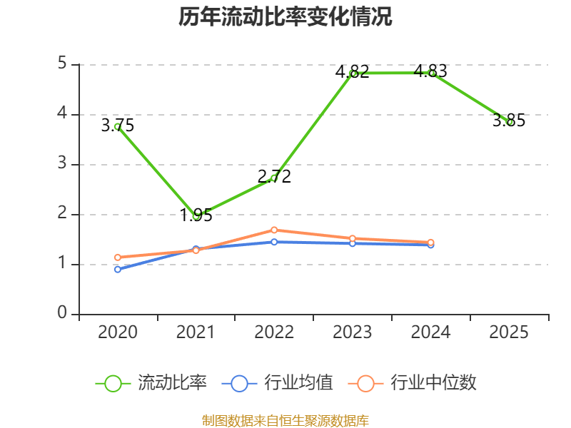 2025年,公司流动比率为3.85,速动比率为3.81。