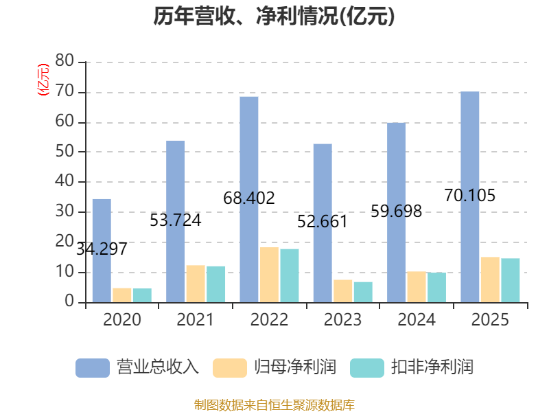 中证智能财讯锦江航运(601083)4月1日披露2025年年度报告。2025年,公司实现营业总收入70.1亿元,同比增长17.43%;归母净利润15亿元,同比增长47.00%;扣非净利润14.55亿元,同比增长48.28%;经营活动产生的现金流量净额为24.83亿元,同比增长30.53%;报告期内,锦江航运基本每股收益为1.16元,加权平均净资产收益率为16.63%。公司2025年度分配预案为:拟向全体股东每10股派现6.12元(含税)。