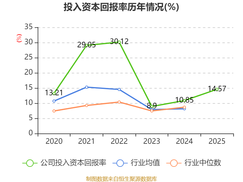 数据显示,2025年公司加权平均净资产收益率为16.63%,较上年同期上升4.39个百分点。公司2025年投入资本回报率为14.57%,较上年同期上升3.72个百分点。