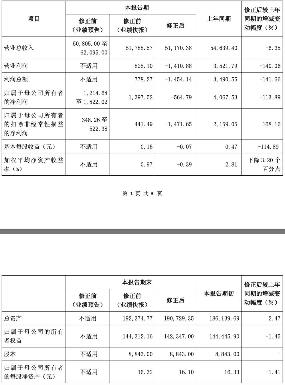 公告显示,公司本次修订后的业绩预告及业绩快报与公司已披露的2025年年度业绩预告、2025年度业绩快报公告中主要财务数据的差异:修正后的归属于母公司所有者的净利润为-564.79万元,比修正前减少1962.31万元,减幅为140.41%;修正后的归属于母公司所有者的扣除非经常性损益的净利润为-1471.65万元,比修正前减少1913.14万元,减幅为433.34%。