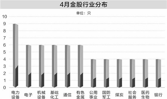 据证券时报·数据宝统计,截至3月31日收盘,已有14家券商发布4月金股,合计98只金股上榜。从行业分布来看,4月金股覆盖中电力设备行业个股数量最多,共计9只,电子、机械设备、基础化工、通信、有色金属5个行业均为6只。