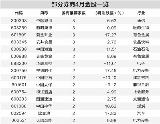 券商4月推荐98只金股